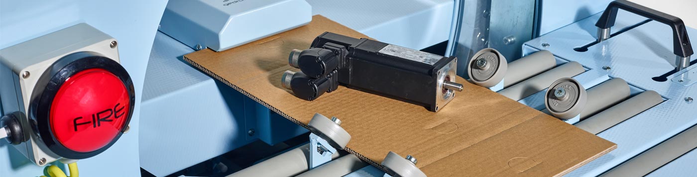 The tray is adjusted to 4 sizes with a hand lever in the immediate vicinity. The appropriate tray (S, M, L, XL) is placed on the tray and the holder fixes the tray automatically. The goods to be dispatched (several are possible) are then placed on the tray. The packing process is started by pressing a button (buzzer). At the same time, the employee can erect the shipping carton or prepare shipping documents.