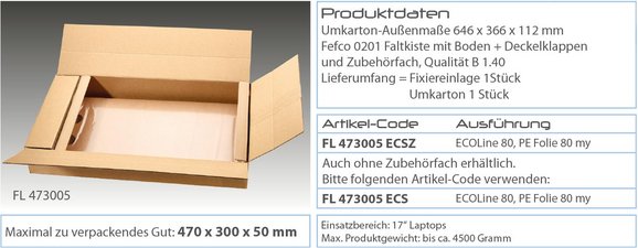 Mit dieser Sonderverpackung auf Basis der Emba-FLEX® Fixierverpackung bieten wir Ihnen ein universell einsetzbares System für den sicheren und kostengünstigen Versand Ihrer Laptops.