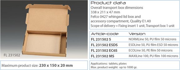 | 230 x 150 x 20mm | FL 231502 | ca. 1,0 kg |