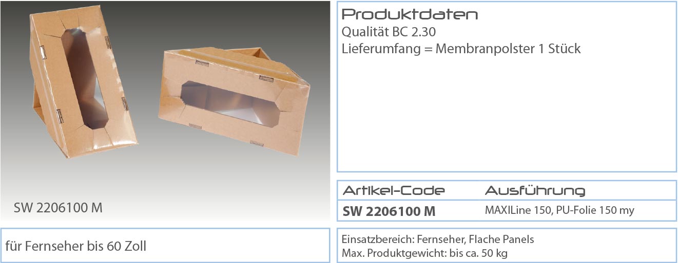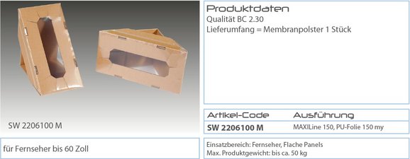 Entwickelt wurde diese Polster-Lösung für groß-formatige Flachbildschirme und Panels mit oder ohne Standfuss. Maßgeschneidert ist diese Verpackung für 32 bis 60 Zoll Bildschirme. Kleinere Größen auf Anfrage.