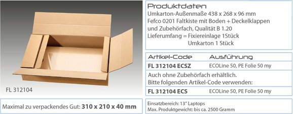 Anhand Ihrer Laptop-Abmessung wählen Sie die passende Standardgröße aus. Legen Sie dann das Laptop unter die Folie der Fixierverpackung auf die Wellpappe. Durch die seitlichen Flügel, die nach unten geklappt werden, spannen Sie das Laptop fest auf das Wellpapp-Format. Damit ist Ihr Gerät fest fixiert und gegen Rutschen gesichert. Zum Schluss noch die gegenüber liegenden Klappen aufstellen. Ihr Laptop ist sicher vorgepackt. Durch den zusätzlichen unteren Hohlboden ist Ihr Laptop zu allen Seiten auf Abstand und damit gegen Ausseneinwirkung